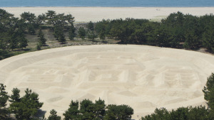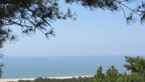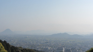 その後、電車で善通寺に向かった。駅から十分ぐらい歩いてやっと善通寺についた。遠くから高い五重塔が見えた。善通寺と他の寺とはなんか違う雰囲気をくれた。でも、どこが違うかちょっと表せなかった。まあ、自らで行けば俺が何か言うのか多分わかると思った。善通寺から離れてから、琴弾公園に訪ねに行った。琴弾公園に行きたい理由は琴弾公園の中にある砂絵の銭形寛永通宝を見てみたいから。公園にある展望台に登ったと、でかい砂絵の銭形を目に映った。しかも、広がった瀬戸内海と屋島もはっきり見えた。10分ぐらいかかった坂を登った価値があった。