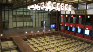 逛完一圈下山後,來到琴平內另外一個有名景點,那就是舊金比羅大芝居金丸座。它是日本現存最古老的歌舞伎劇院,也是國家文化遺產之一。終於等到他開始開放進入參觀後,一邊聽著工作人員的介紹一邊欣賞整個劇院,因為劇院很古老所以沒有什麼電動機關,可是卻有很多人力操作的機關,像是舞台旋轉和演員從台下出現到台上,都是由幕後人員在舞台底下操控的。其中最厲害的還是可以讓演員從舞台後方飛到舞台前方的機關,聽說演員還邊飛邊撒花,聽起來就很酷。話說學校在六月的時候會帶我們去看歌舞伎,到時候再分享給大家囉!!