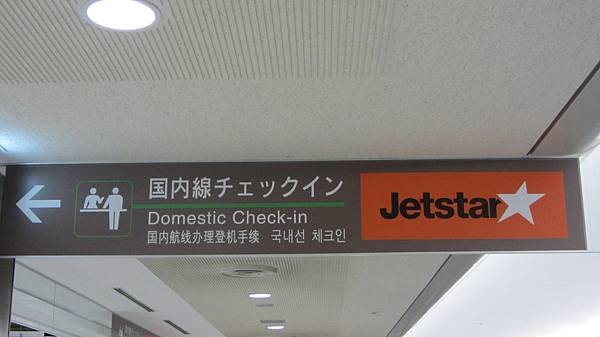 1. 這是個非常簡單的方法,拿著列印出來的電子機票進入機場後,只要延著「捷星航空Jetstar」的指標走,就可以抵達報到櫃檯。