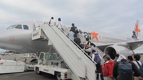 4. 由於在大機場,如東京成田機場,捷星航空Jetstar是沒有聯絡通道直接通往飛機的,因此需在登機入口搭乘接駁巴士至飛機前,然後上機。