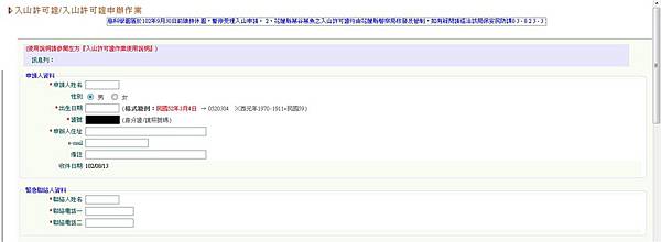 註:緊急連絡人資料不可以是同為入山者的資料,若相同則無法申請。