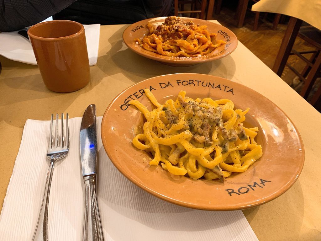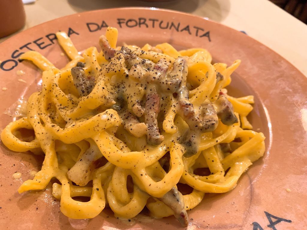 我和S小姐這次點的分別是Fettuccine Amatriciana(番茄培根寬條義大利麵)和Strozzapreti Carbonara義大利麵,我們一致覺得「Osteria da Fortunata」的寬條義大利麵Fettuccine非常有嚼勁,而且兩份都份量十足。