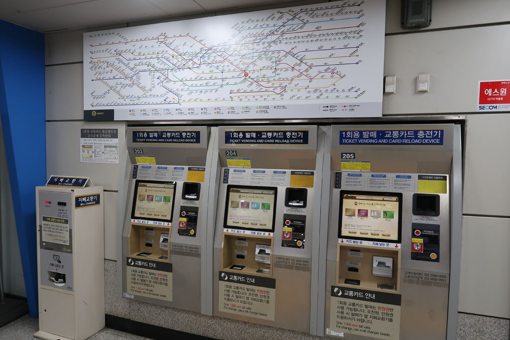 地下鐵站內的自動售票機也非常簡單上手,中文頁面當然不會少,而因為售票機基本上只能放1000韓圜的鈔票,所以售票機一旁都會設置換鈔機,相當方便。