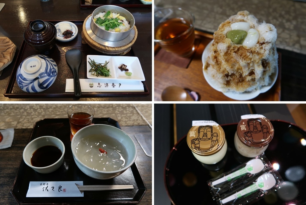 享用完正餐當然要品嚐一下甜點,而竟然都來到了奈良當然要吃一下當地的名產「吉野葛」。其實在來奈良之前我們就已經先在京都的老店品嚐過一次,可以說是夏天必備的日式甜點。
